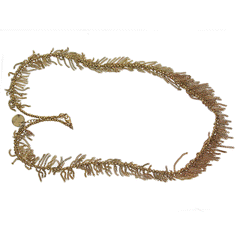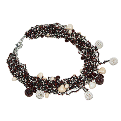 Here’s presenting a neckpiece for women from ZAROOD, specialized in handmade products. This is simple yet tasteful neckwear, with a single brown bead with a brown tassel of round shape and different sizes hanging in the center and c dangling chain at the bottom. HIGHLIGHTS: Small piece of art. Can be used for informal gatherings. Best suit with western dresses....