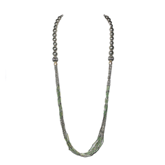 A pretty long necklace with small spherical and cube shaped silver beads. This piece is very unique and its subdued elegance and edginess. Here’s presenting a neckpiece for women from ZAROOD, specialized in handmade products. A pretty long necklace with small spherical and cube shaped silver beads along with a long chain which makes it embellish. HIGHLIGHTS: Dainty neckpiece. Gracious...