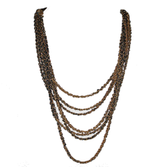 A necklace with multiple layers, each of a different colour, beaded with small beads. This colourful piece will add instant vibrancy to any outfit. This 4 layered necklace is a must have accessory for the winter season. Add color and glow to your attire. This necklace made from muticoloured glass beads is especially designed for the winter months. The bright...