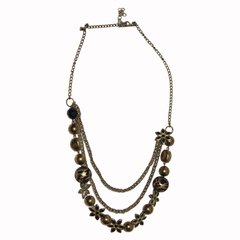 A delicate layered necklace with three simple bronze chain layers with the last layer beaded. With spherical and flower shaped beads. This piece will make a statement. Created by combining multiple types of metal and alloy beads of golden and copper colour, this unique piece is best suited to be worn over a light colored dress top. The detailing of...