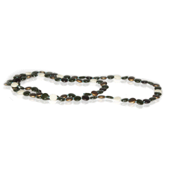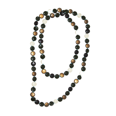 Zarood Earthly Glamour Necklace This long tapered necklace adds a touch of nature-inspired beauty to your look with its earthy brown and black beads. The dark tone is interspersed with milky white beads that brighten this piece. This cleverly designed and handcrafted necklace has a rustic touch albeit with a modern twist. That is innovation as a piece of jewelry. ...