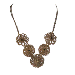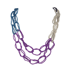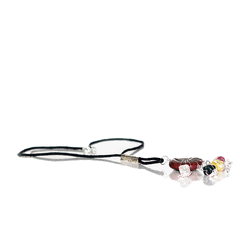 Simple, earthy and very feminine this neckpiece is like poetry in accessory! This daintily handcrafted necklace design will make you stand out as you exude charm and grace. As you busy yourself with the myriad of tasks, this piece delicately swings and sings in tune with you. The simple black thread allows the burnished multicolored stones to be the focus...