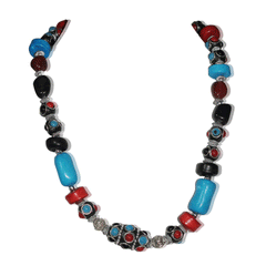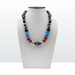 Barrage of colors, textures and material this necklace sure has a mind of its own. You are a maverick – unorthodox, independent minded, strong and resilient. Not one to take things at face value you challenge the ordinary. This intricately and intelligently hand crafted necklace is certainly “maverick” in so much as it does not conform to the regular and...