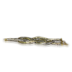 Three bracelets each with its own individuality have come together beautifully to bring you a unique piece of jewelry. The charm of this trio lies in how deftly the artisan has not only handcrafted each piece but brought them together to give you an accessory that springs forth as a completely different piece. The subtleness of the creamy look is...