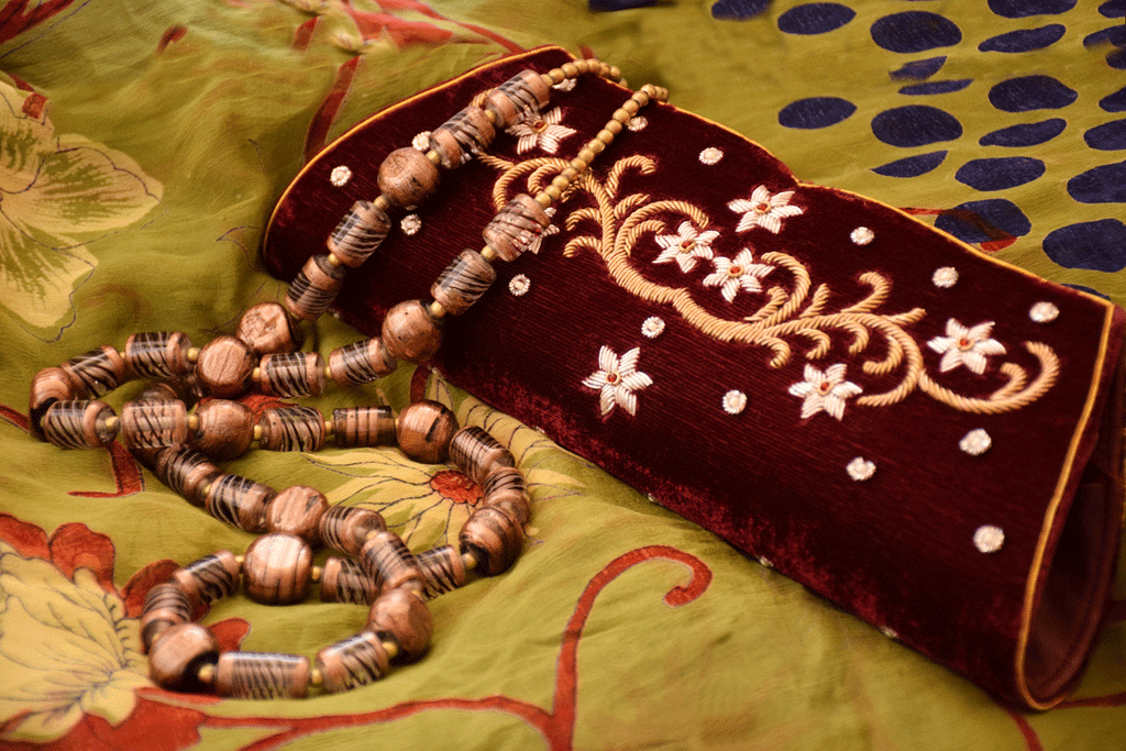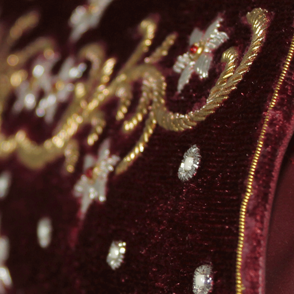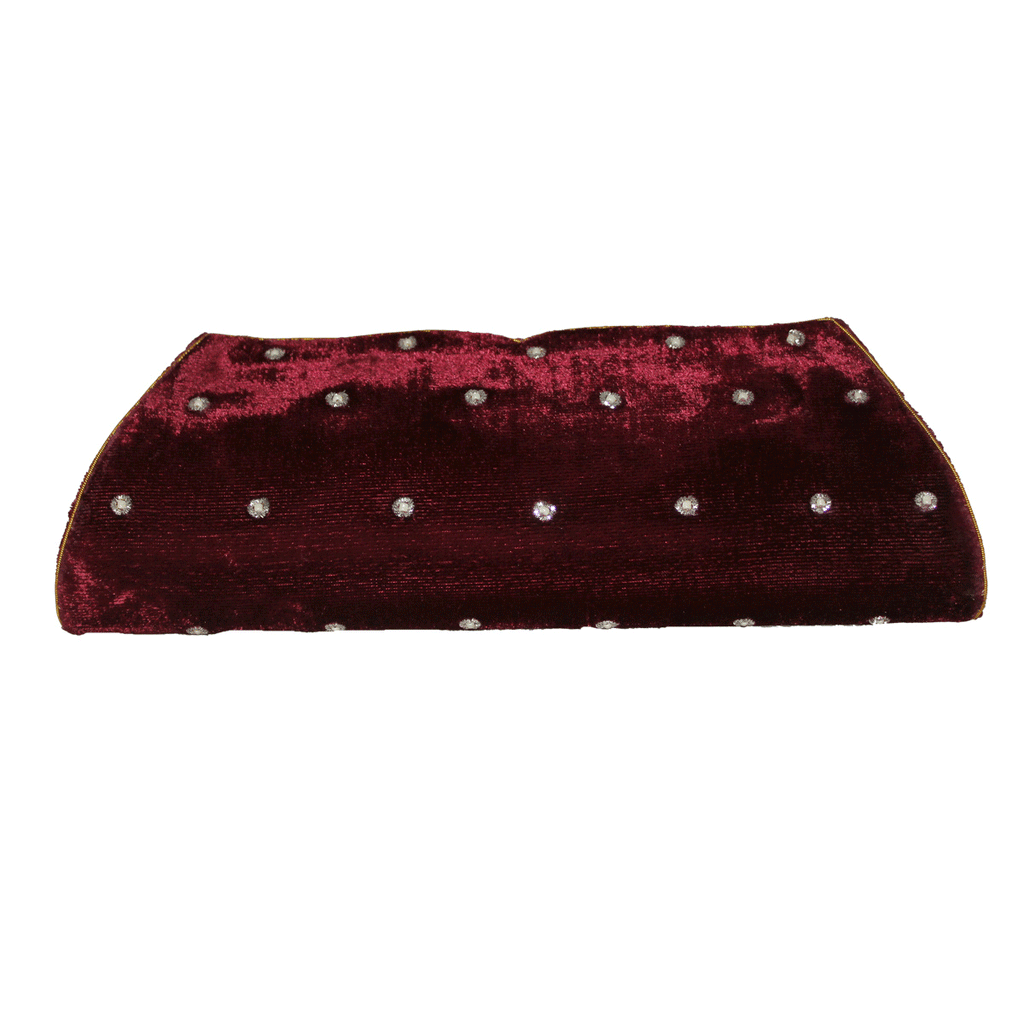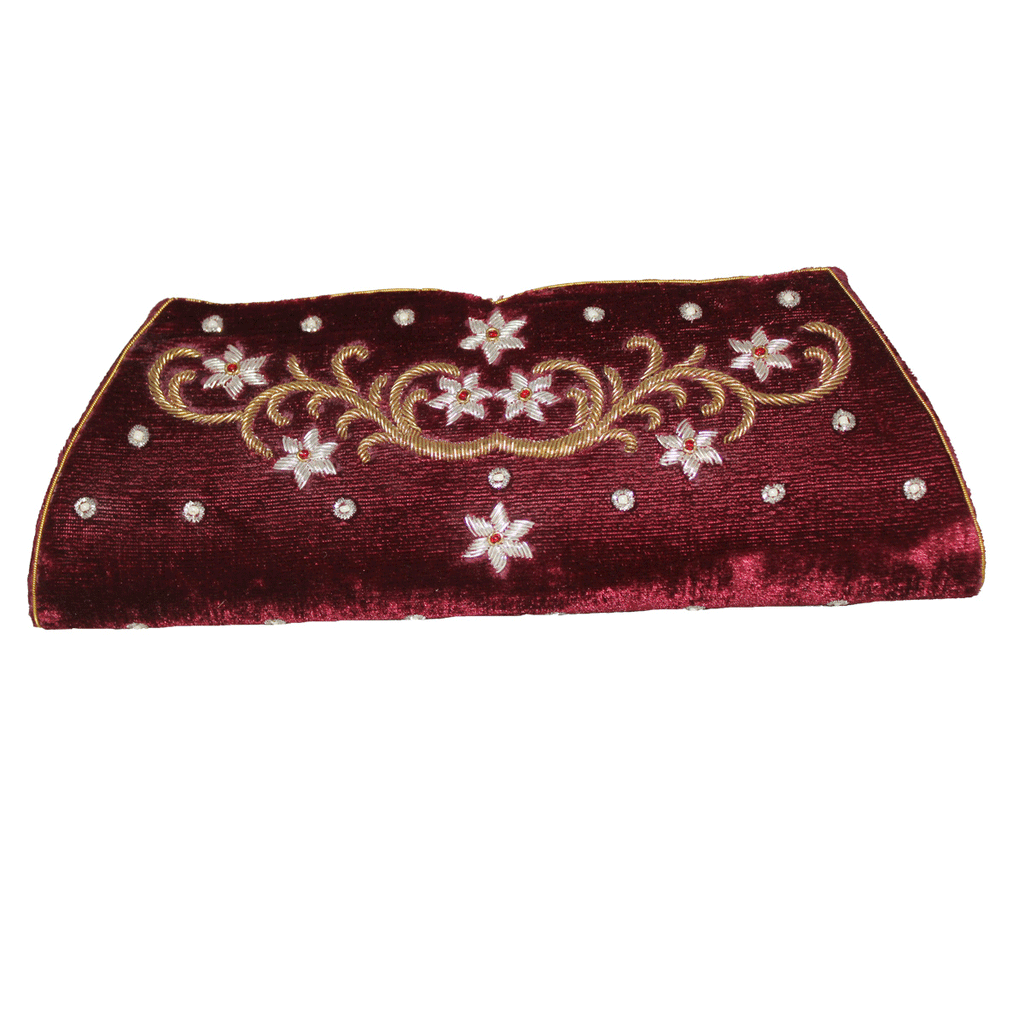 A roayal Maroon Clutch bag with very beautiful golden stem and silver flowers embroidery work. See it to believe this beauty