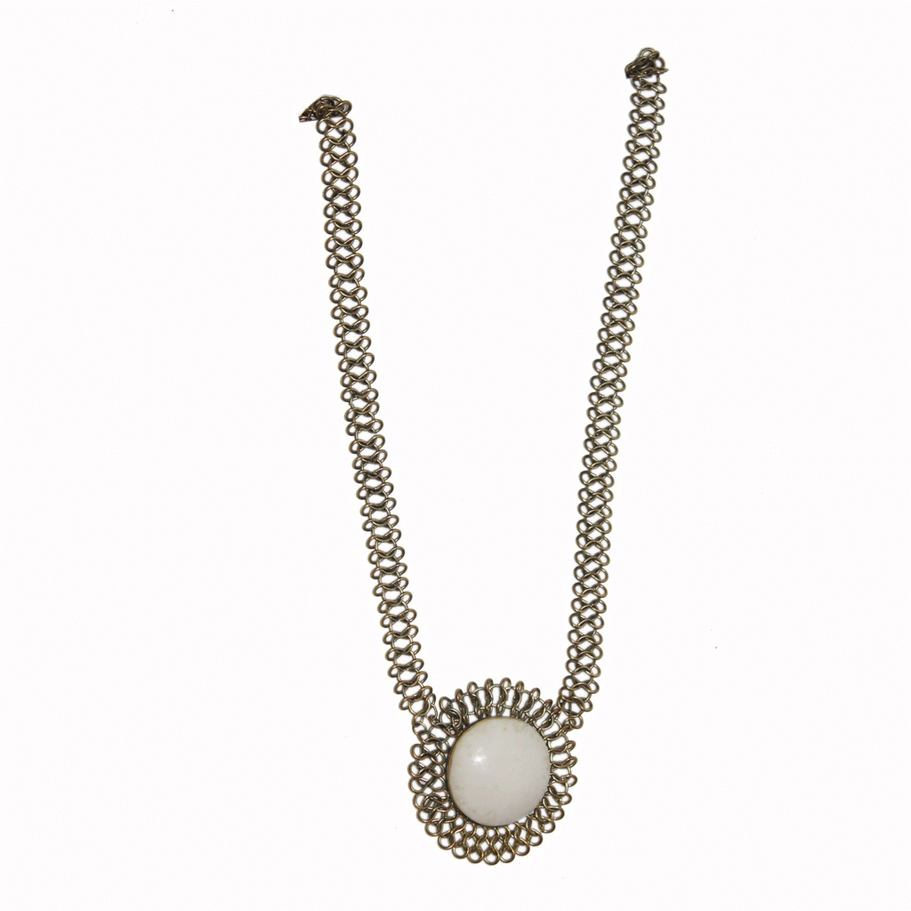 The first thing that strikes you when you set your eyes on this necklace is how exquisite and painstakingly crafted it is. The appeal is even more intensified when you realize that it is handcrafted – someone who has put in hours of dedication and love. Its diligently crafted design is evocative of royal grace and charm. You will most certainly look fetching and picture perfect when you adorn yourself with this piece. The center piece is truly a conversation starter due to its eye catching jewel like setting in gold toned metal.