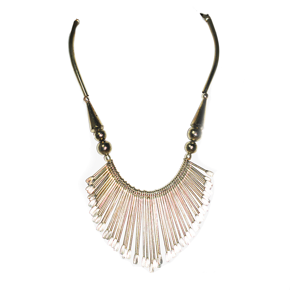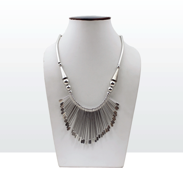 The light of the sun when reflected through the metal shapes serves only to add an eye-catching sparkle and what can be described as a hypnotic effect!  Allow this neckpiece to be the focal point of your attire, by keeping your look minimalistic. The allure of this piece will ensure that the onlookers will only be able to gawk in awe. Let this piece do the talking while you remain busy doing what you do best which is being the strong woman that you are.