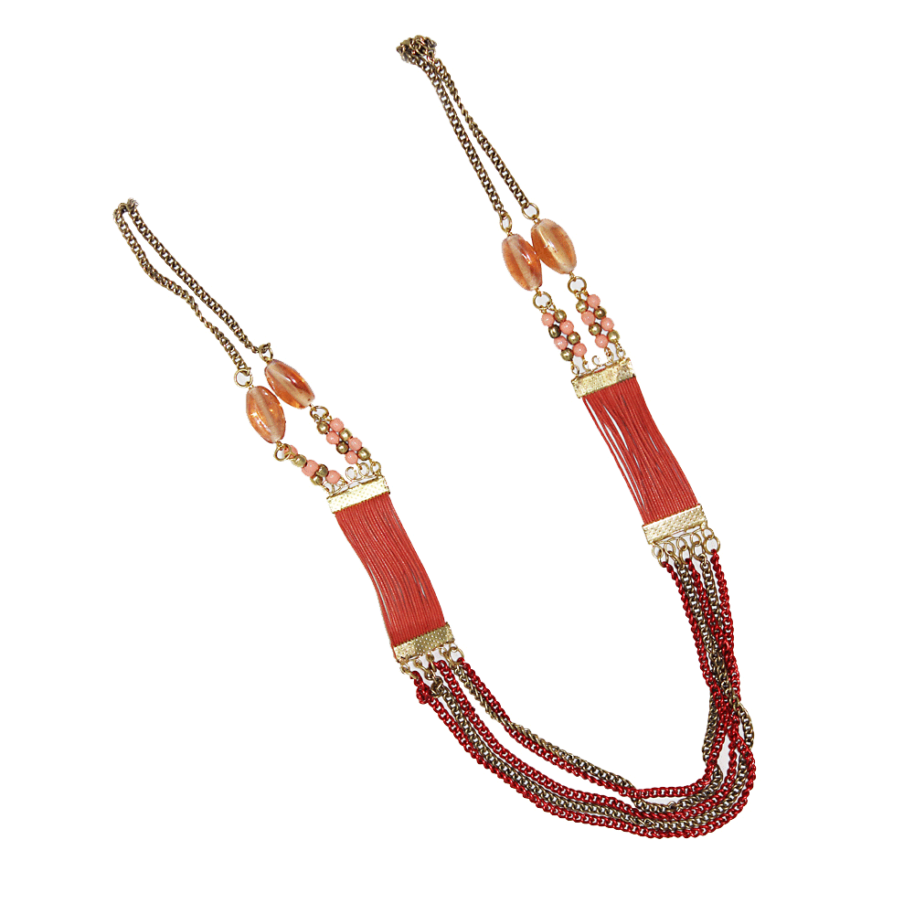 Orange or tangerine combines the energy of red and the happiness of yellow. For this reason this necklace should be your go-to accessory as it confidently says endurance, vitality and creativity. The intricately and delicately handcrafted piece color blocks beautifully to come together as thoughtful. Like the color tangerine curiosity is a driving characteristic for you, and with it comes exploration of new things. This piece in so many ways is you – the woman of today. Warm, cheering, non-constricting ... you have a way of bringing life and relieving repressions.