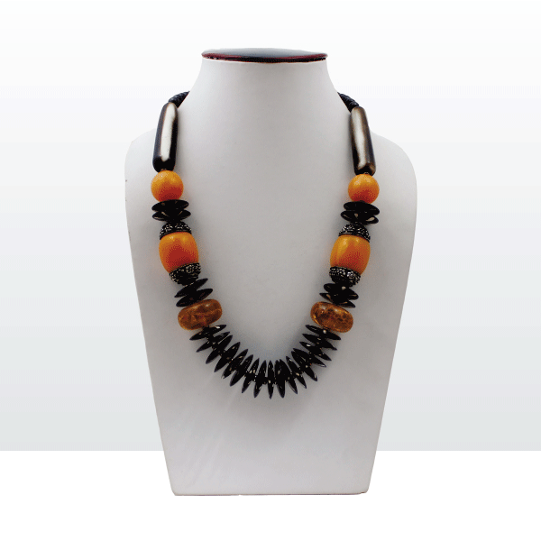 Handcrafted from Resin and Bone beads, the Zarood Tantra Necklace is a source of positive energy. It lends vibrancy to the wearer and make her more attractive.
