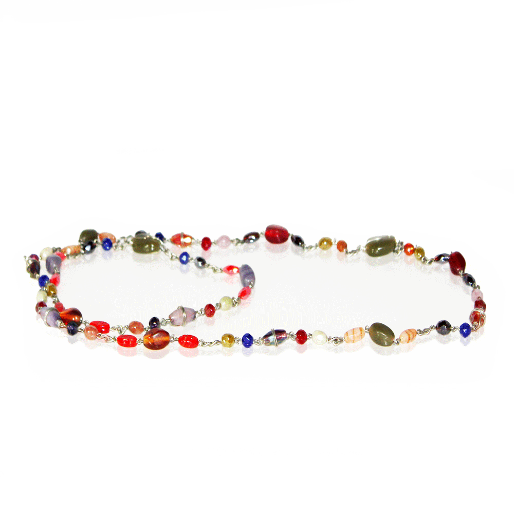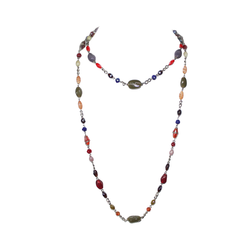 The myriad colored beads in their whimsical shapes makes this piece one that you would want to keep on. You would find reasons to team this up an ethnic attire to get an earthy and rustic feel or tie it in a knot to add spunk and a cheeky style statement with a casual outfit. It would even wear brilliantly with office wear as a long and dangly attention-getting piece. Simple, warm and stand-out!