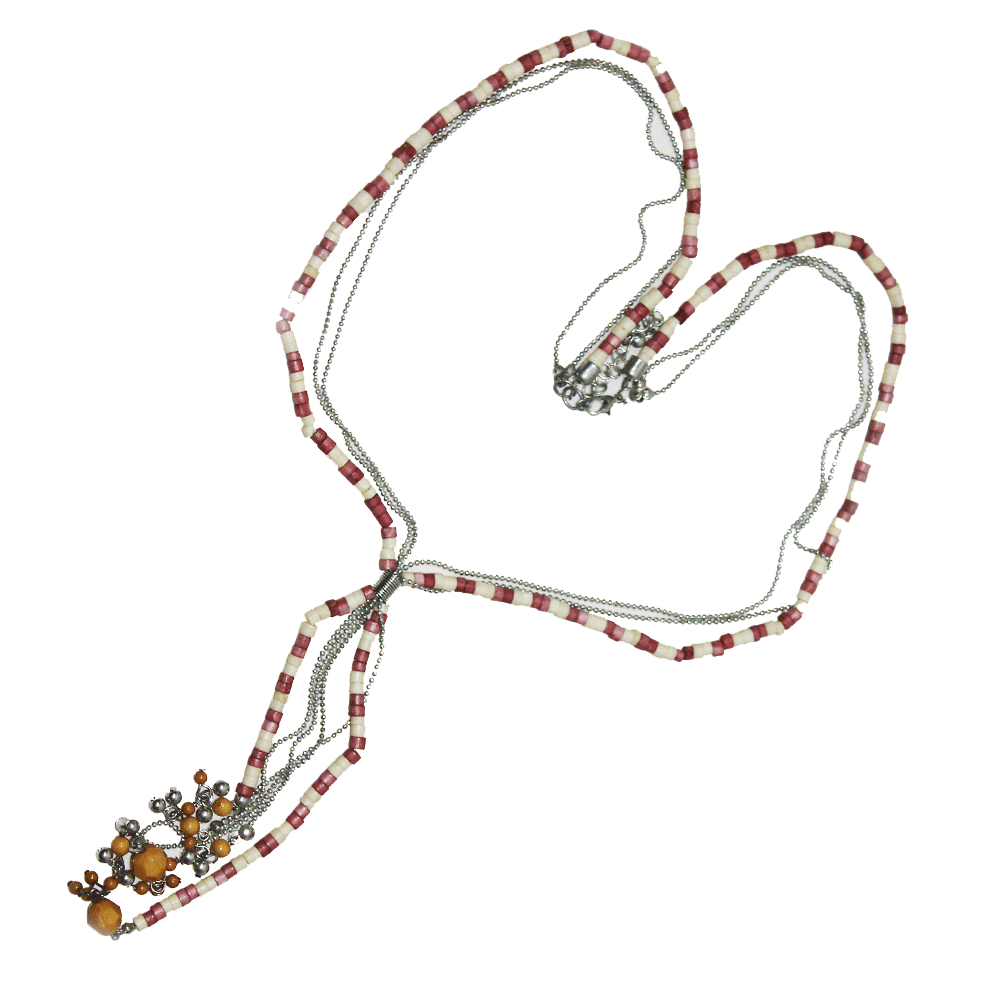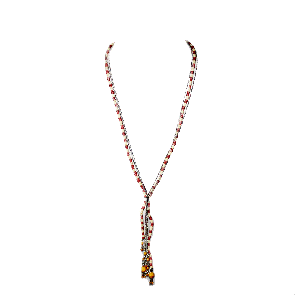 The beads intertwined meticulously give the necklace a radiance and sheen.  Thoughtfully handcrafted this piece is certainly a must have in your standout collection. It will wear elegantly with your business attire that sometimes is monotone.  This hand made necklace will add the required element to dress this attire. When teamed with a delicate ethnic wear, it is sure to enhance your radiant feminine beauty.  Innovate with this piece – tie the sunshine yellow beads in a knot and don it for a funky look for a fun-filled girls’ night out. One necklace – so many styles! Given the color combinations, this necklace is versatile and can be matched and contrasted with many different colored outfits. Smart choice for the busy woman of today who is non-fussy but trendy!