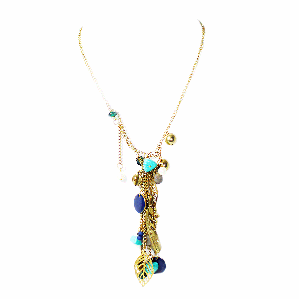 The “Zarood Coastal Charms Necklace” is simple yet stately neckwear. This gold locket speaks elegance and opulence with its rich combination of blue charms and a gold chain which work together to create an oceanic feel. The pretty combination of the different shades of blue and gold lend this necklace a cool look.